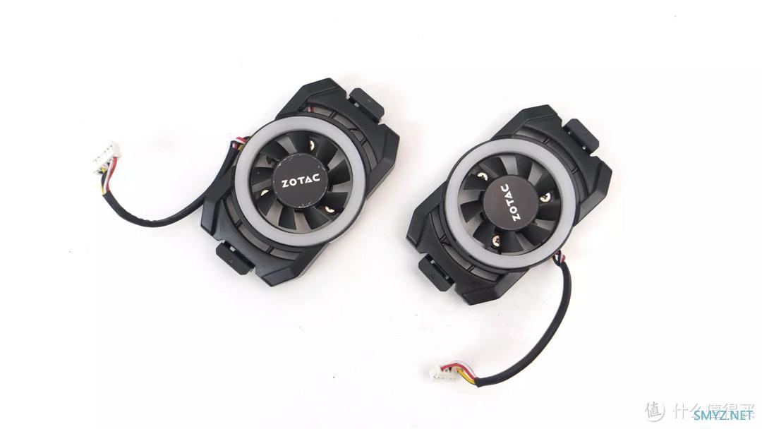 ▲可以用这两个接口接驳RGB背板风扇组成这样的合体形式是为了在高热情况下增强显卡的散热能力。但是也会增加显卡的厚度到3.5槽,同时噪音也会增大一点。