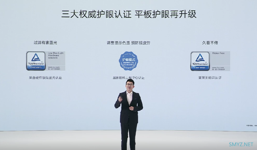 考虑到用户长时间用眼,所以护眼很重要。荣耀平板8支持硬件级防蓝光,还有深色模式,电子书模式,通过了三大权威护眼认证,包括莱茵双护眼和国家眼科工程中心认证。