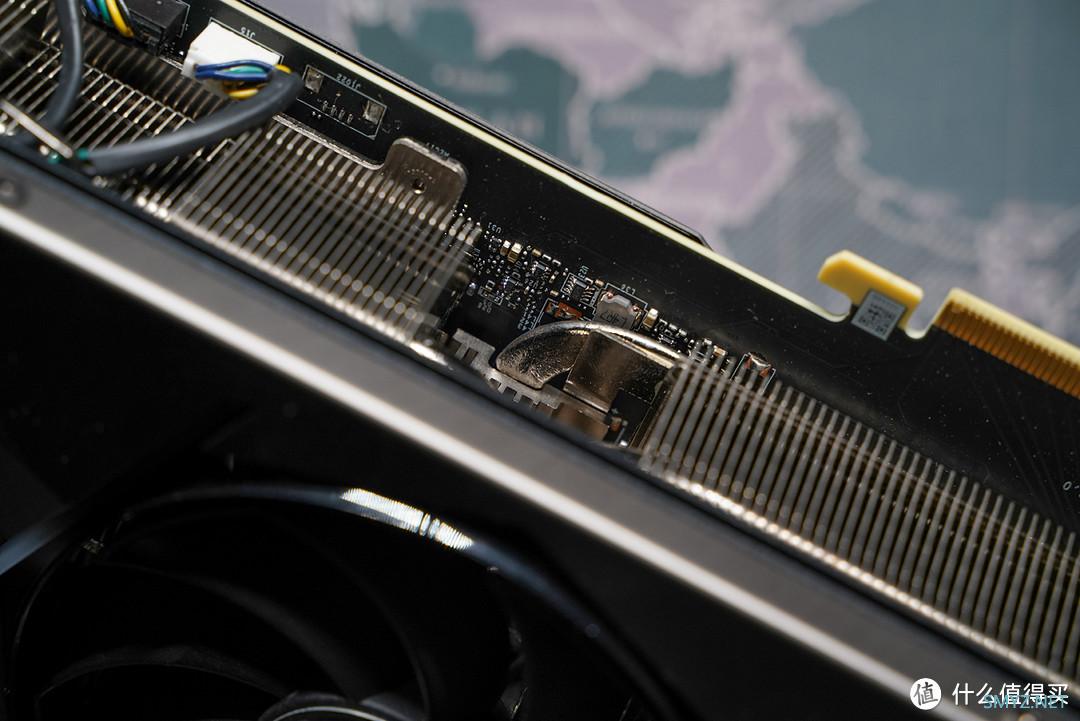 针对GDDR6X的高发热量,显卡也为它单独配备了一条专属热管,让整块显卡散热无死角。