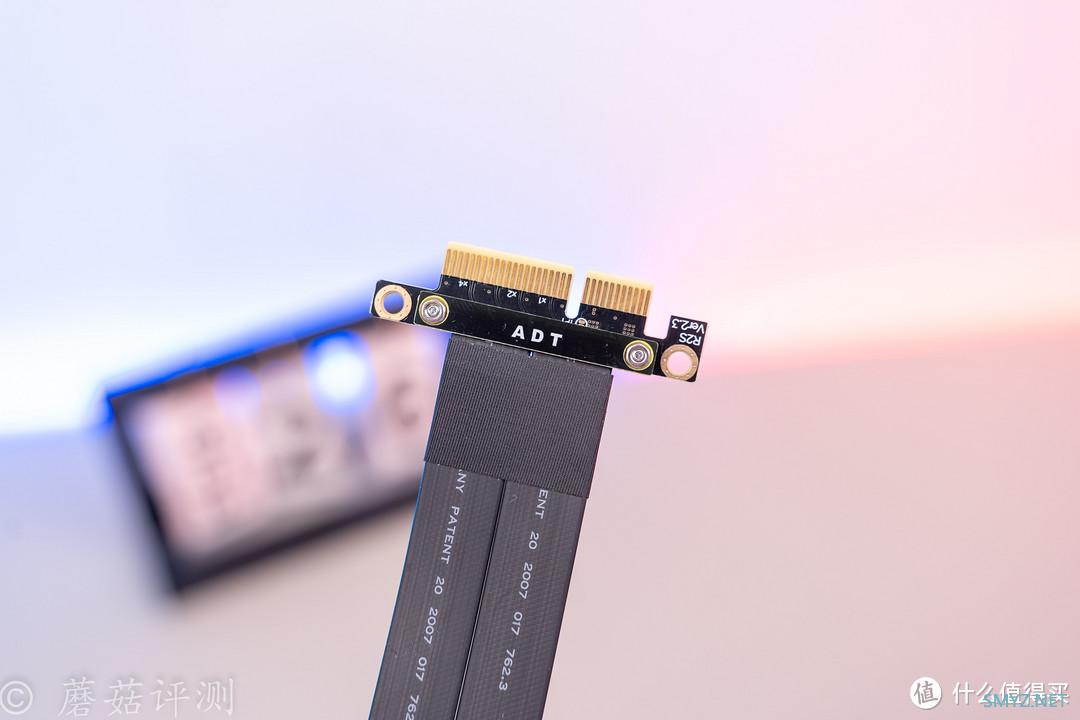 ▼PCIe的线材部分,摸上去挺有质感的,貌似这个线材自带屏蔽设计,正面可以看到斜向交织的网纹。
