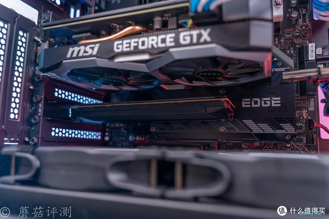 ▼显卡默认就横置安装,挡住主板中间的PCIe3.0 x 4接口,900P用主板最下面的PCIe3.0 x 4接口,通过延长线拉出来,900P固态固定到机箱竖直的PCIe插槽上。