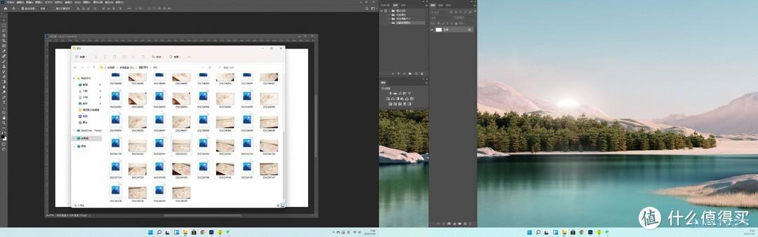 既然是采用双屏方式,在Windows系统中肯定会分为主屏幕和副屏幕。而在设计中,我们常会遇到两种情景,一是在自己的工作状态下,我们习惯使用自己最熟悉的工作方式,比如打开已经拍摄的文件夹,则会习惯的把文件夹放在主屏幕中,这会遮挡主屏幕的视角,由于我们经常会打开很多文件夹和软件,这也会让其小尺寸显示器的显示变得更加拥挤,而在双屏方案刚好解决了这个痛点,这也会涉及到第二种情景,即是在客户需要一边预览图片,一边观看修图的进度或提供意见,双屏方案则是可以提供这种双视角。