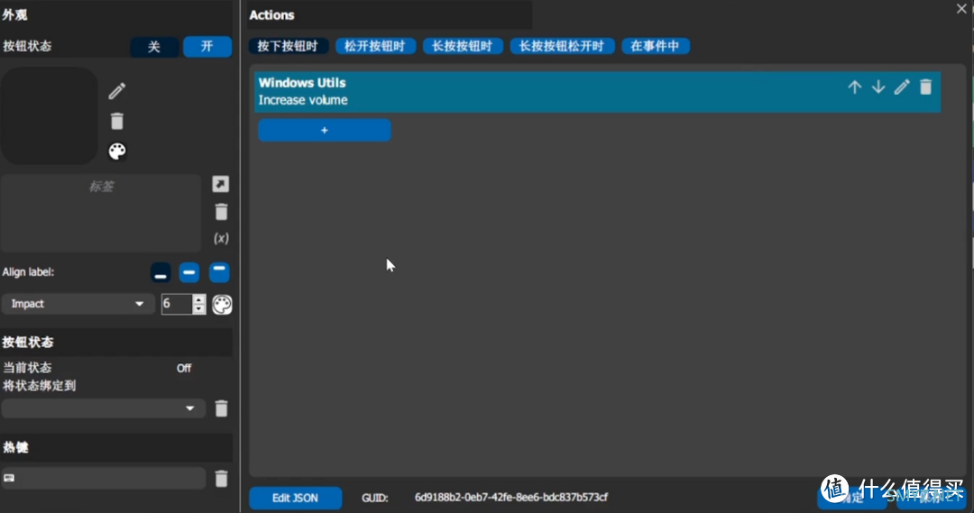 这里选择音量调高作为演示,点击左上角进行图标选择,选择完之后先点击确定再保存才会回到主界面并生效
