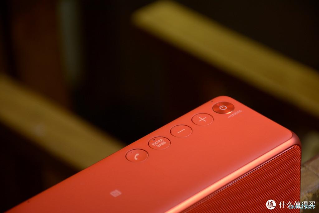 机身的顶部采用的是一种类肤材质,拿在手里非常舒适,另外,和音乐播放功能有关的所有按键也都被集合在了这里,并且每一个按键上都会有相应的按键标示,这让所有的操作都能一目了然,对了,看到它中间的“N”字标识了么,它还带NFC连接功能,手机碰一下就能蓝牙连接,这在当年是要重点吹的功能。