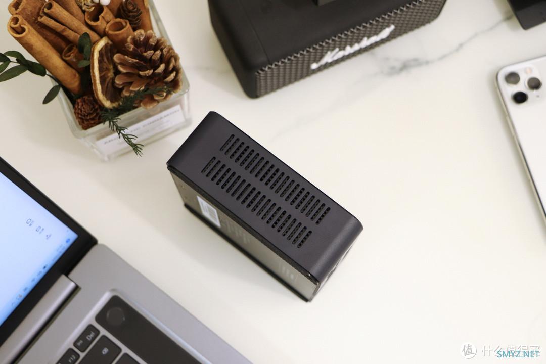 虽然接触过不少数码产品,但是迷你主机确实是第一次使用,所以拆开包装看到产品的那一刻,我还是比较惊讶的,零刻EQ59跟我们平时使用的电视盒子的大小差不多,124 x 113 x 42mm,重量仅295克,放在手机旁边都不会觉得有多大,所以你甚至有需求时可以直接随身携带一台主机出门。