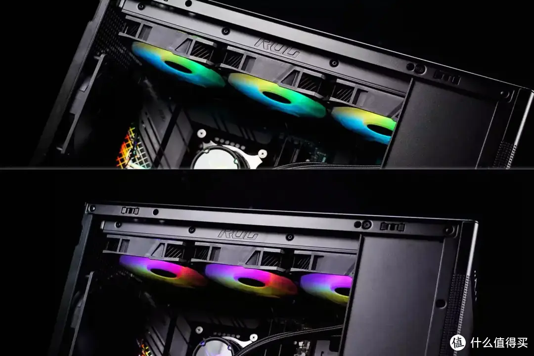 因为华硕AP201冰立方机箱的顶部,左侧,右侧以及前侧的金属板都使用了边长1.5mm的方形透气孔,可以使机箱在透气性和防尘之间取得平衡,也就是说这种方形透气孔设计是能够兼顾透气性和防尘效果的,而且搭配有RGB灯光的硬件,在夜间看上去还会有“与众不同”的效果。