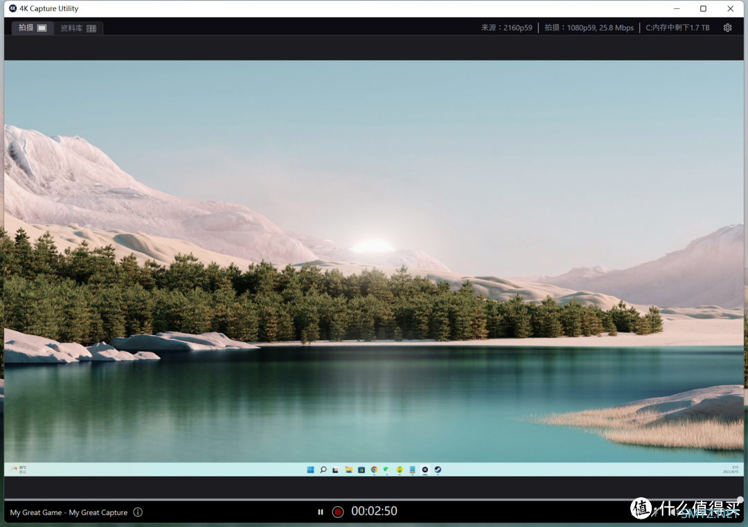 打开4K Capture Utility软件,在主界面就可以看到要采集的画面,右上角也能获知目前的视频来源与录制的数据(比如分辨率、帧率、硬盘的剩余空间等等)。在软件的底部是录制按钮与时间,右下角是屏幕快照、麦克风、声音的播放控制,通过它们,我们可以自行决定视频所需的开始时间,不错过任何一个精彩画面。