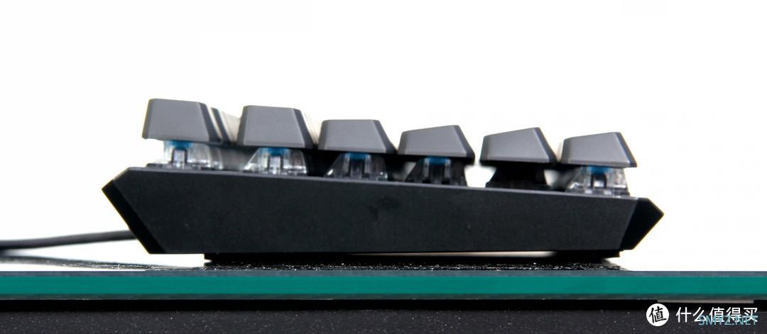 GK50 ELITE采用的是凯华青轴,总行程4±0.4mm、触发行程2±0.4mm、段落行程1.75mm、按键寿命7000W次。整体能力优于Cherry原版。实际上凯华轴对机械键盘能快速普及立下了汗马功劳。