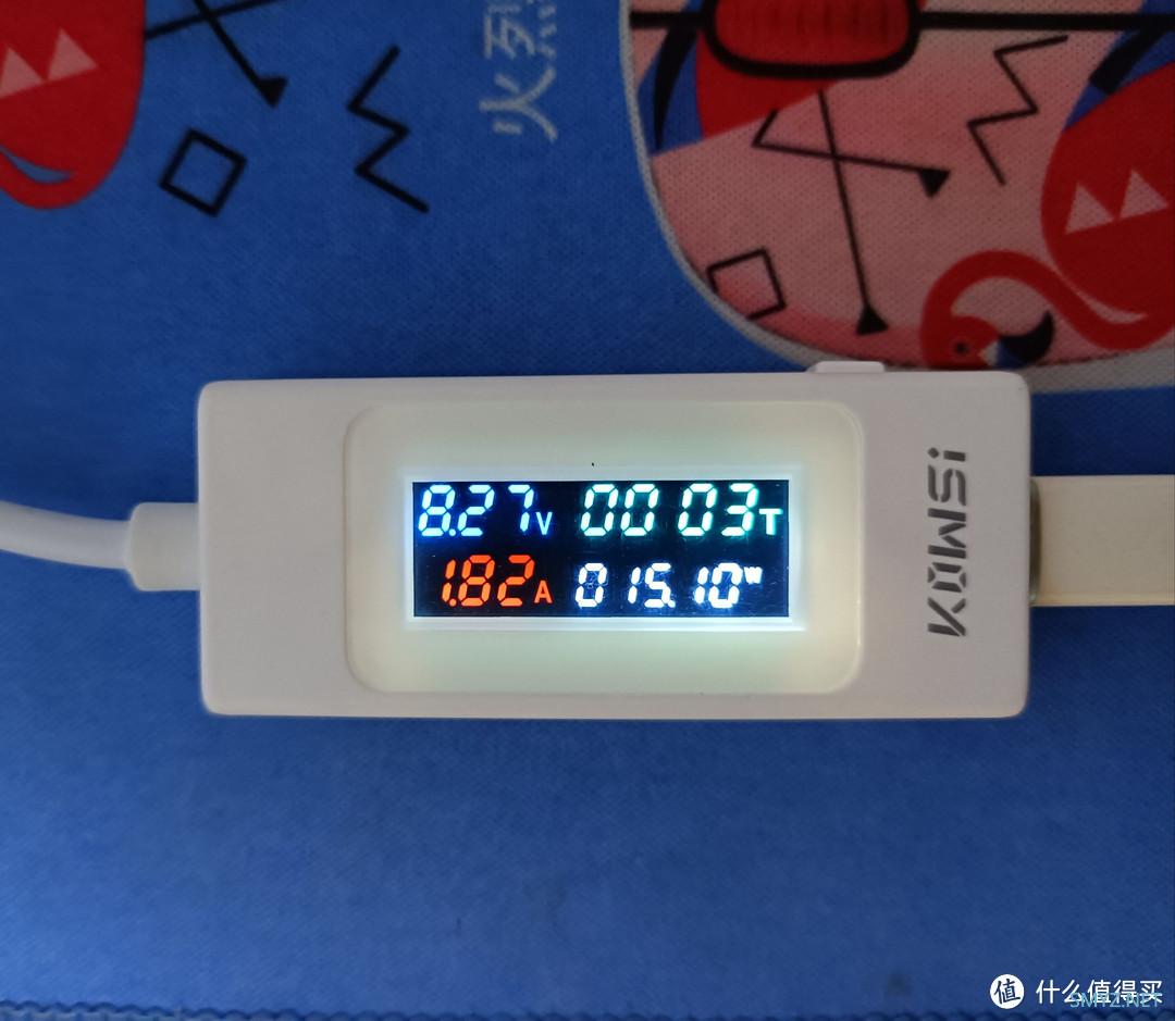 外观做工凑合,表体和线材连接的塑料件有点凸出,拿工具处理了下。表盘的塑料片很软,指甲刮了下就一道划痕。好在不影响看功率。手头2台手机,1台笔记本,1个充电宝,4个充电头,简单试了试测充电功率。