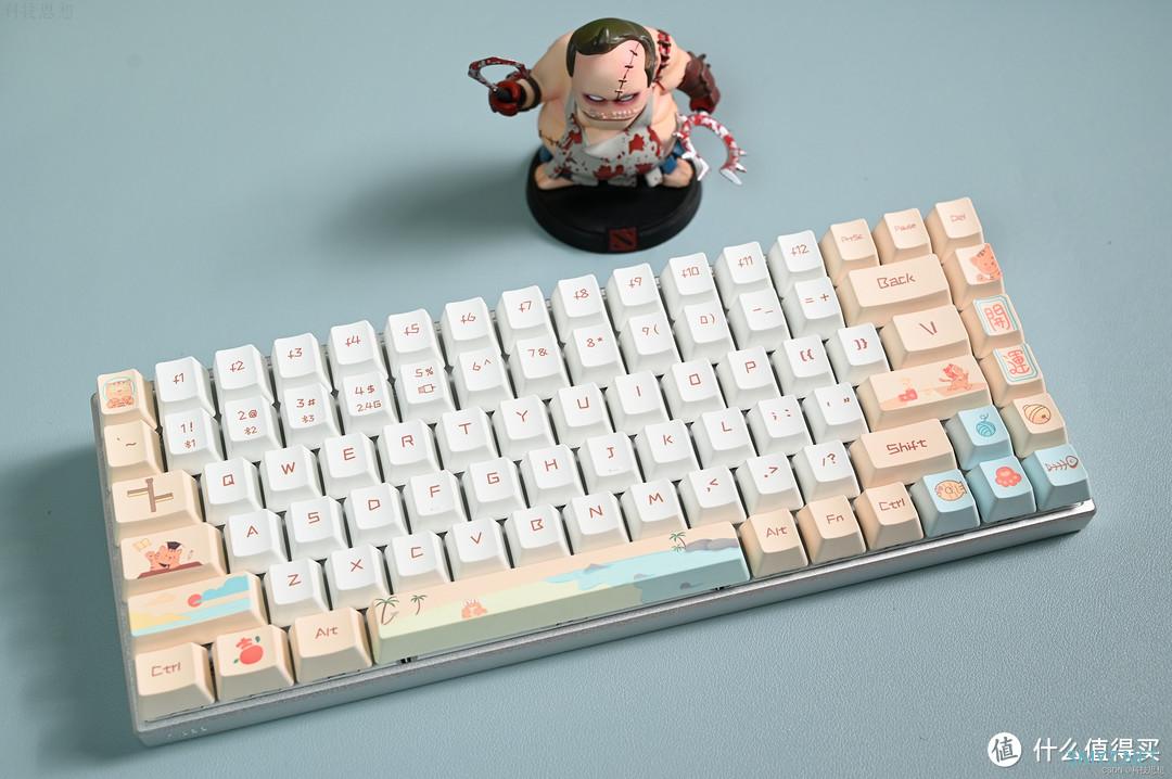 相比同类产品,雷柏MT510PRO的键帽设计确实是趣味十足,放在桌面上真是个让人喜欢的装饰。这款键盘的键帽是PBT材质的,经过了五面热升华工艺处理,上面的字符、图案更耐褪色和磨损,用久了上面的猫咪、沙滩和日出依然会清晰如新。