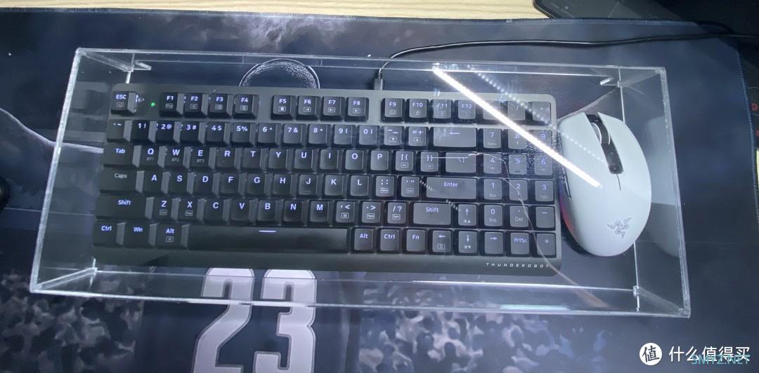 前面提到了,我买的时候特意注重了鼠标尺寸,到手后和我的键盘搭配也刚好可以放在防尘罩里,真的颇费呀!本来是想搞个gpw的,这个多的空间预留给它的,同样宽度只有60,谁知道阴差阳错呐。据说白色不耐脏,这样就完美解決了。