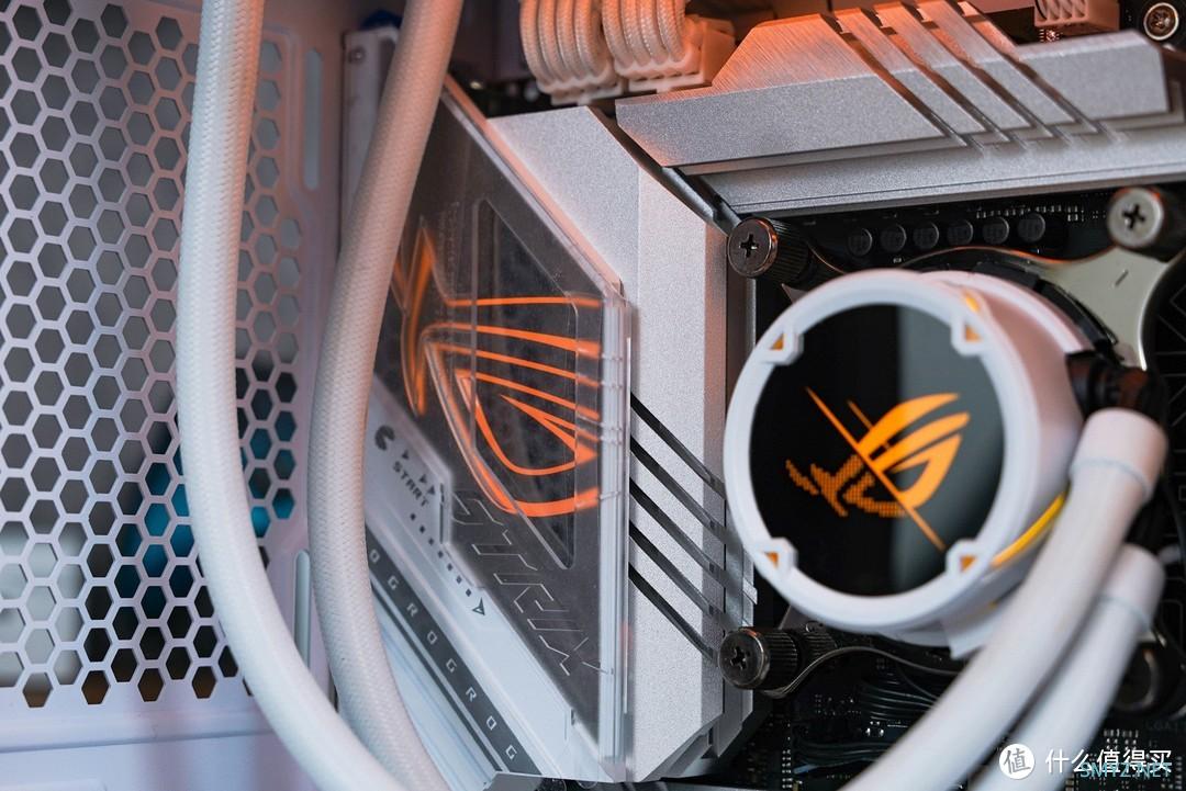 机电散方面则把手上现有的TUF 502机箱和华硕ROG STRIX LC吹雪360 ARGB一体式水冷散热器以及华硕ROG 雪鹰850W电源安排上,显卡方面也是上次装机遗留下的影驰HOF PRO RTX3080。直接展示吧~装机这些过程就省略了。纯白主机的颜值还能有什么好说的,应该没人会提出异议了吧!