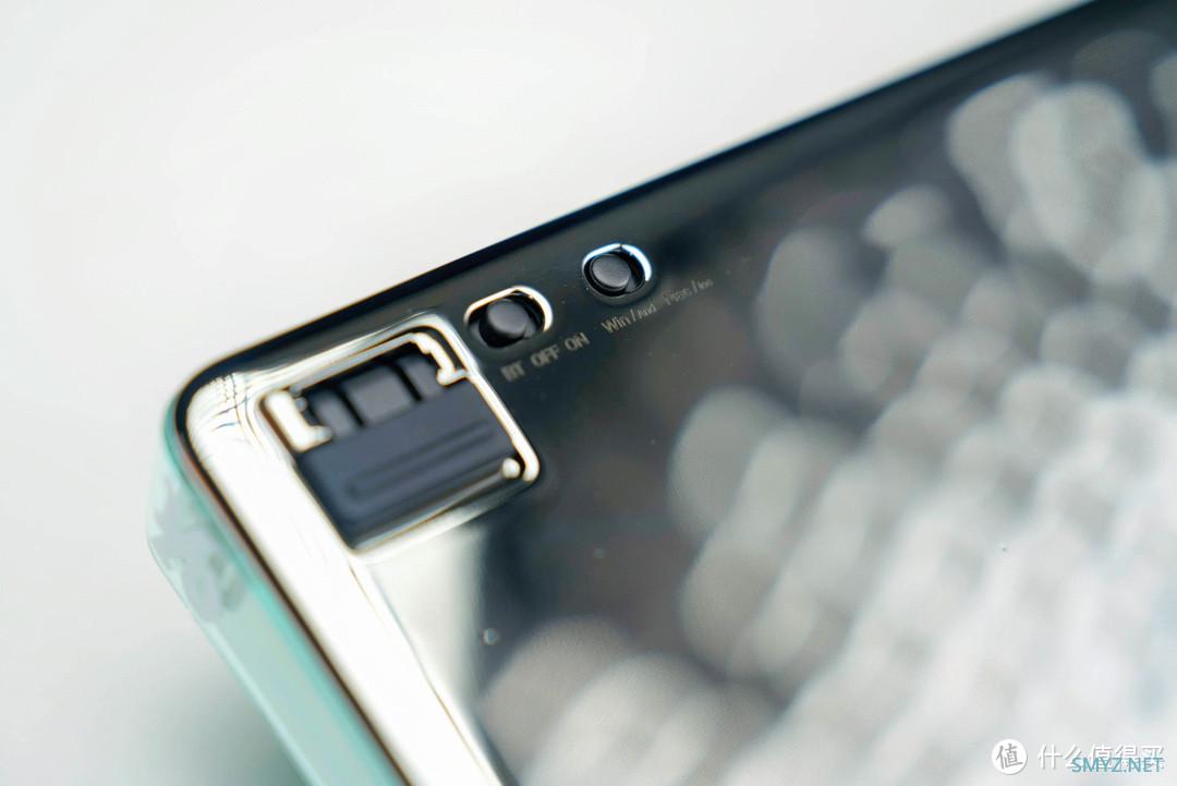 支持有线type c和蓝牙双模,凭借着2000mah的电池容量,在蓝牙5.1的情况下能有不错的链接稳定性和续航。并且支持在使用电池供电蓝牙连接的时候,打开背光使用。一段时间不使用会自动关闭灯光进入待机模式,节省电量,就算是待机下也能做到即刻唤醒。但是注意在低电量的情况下是会关闭灯光的。