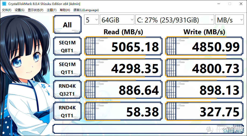 在64G环境下,SN770的顺序读取速度实测5065Mb/s,写入速度为4850Mb/s,同样也能达到。