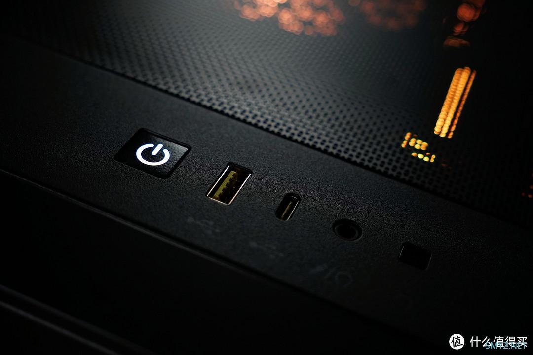 机箱的I/O接口在顶部,从左往右依次是电源开关、USB 3.0接口、USB 3.1、type c接口。