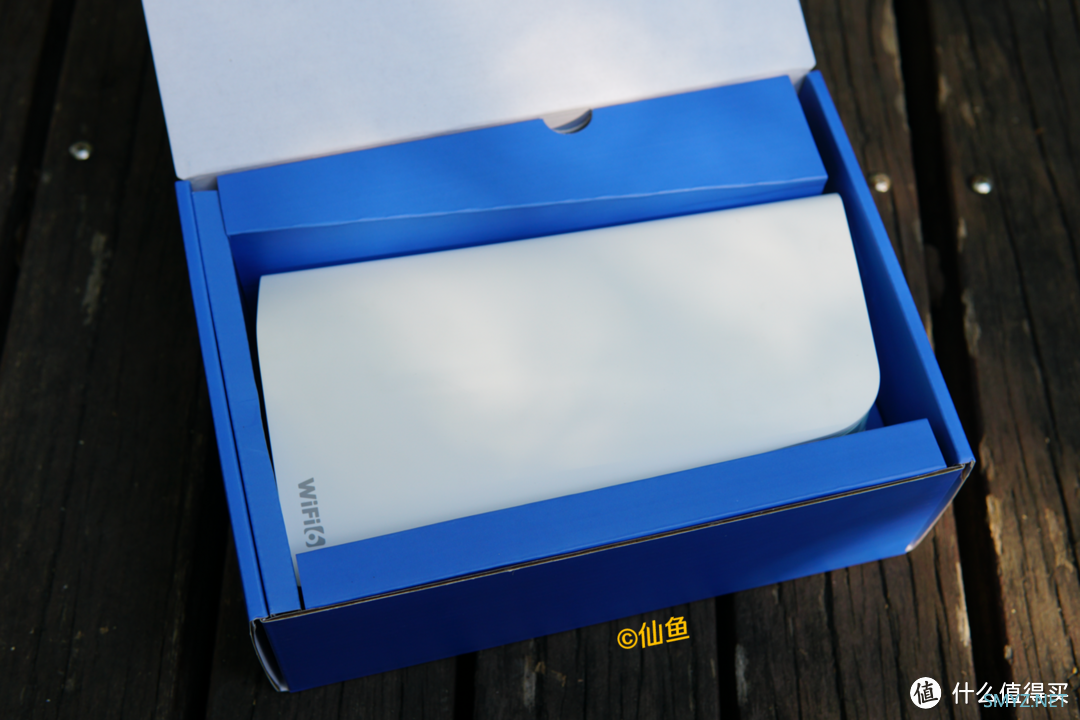 打开后可以看到路由器本体,12V 1A的电源适配器仍然藏于于蓝色纸盒下面:
