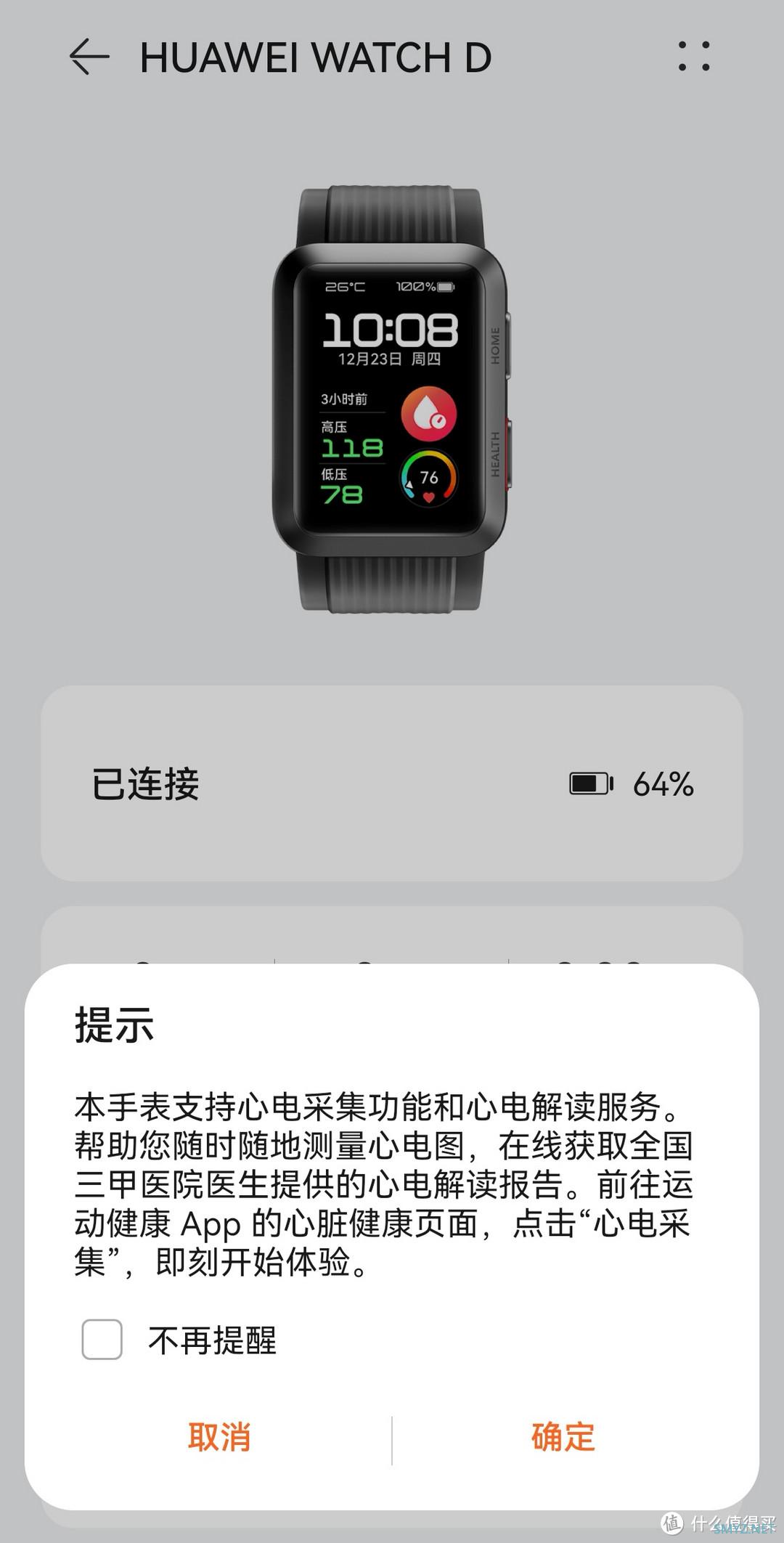 小结:华为WATCH D不仅是截止目前市面上惟一一款集血压测量和心电采集于一体的智能手表,华为本身搭建的健康方面的功能和服务看起来也相当实用。药房版和通用版实际上并无本质的差别(或者我还没发现)只是作为渠道区隔政策的一个版本。作为送给中老年人或者健康关注人群当做礼物,还是挺实用的一个选择。