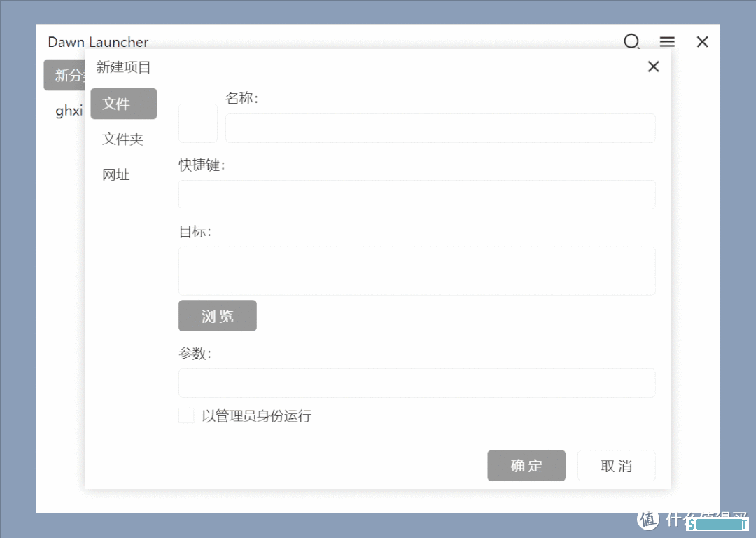在添加的项目上,目前可以添加文件、文件夹和网址,可以自定义图标和参数这些,其中添加网址的话,只需要点击网址,点击“获取网址信息”可以自动获取图标和名字。