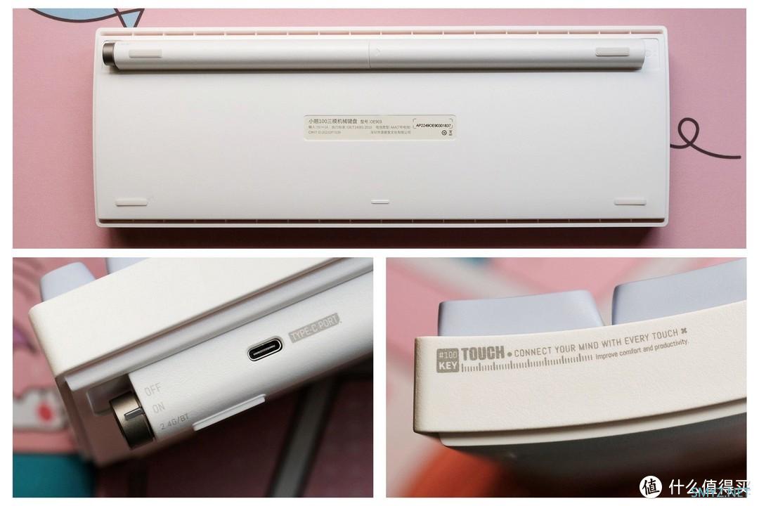 日常使用的话,三模连接+100键紧凑布局用起来还是很安逸的,优点方面,连接稳定,切换方便,颜值够高,手感舒适,静音不扰人,要说缺点也有,什么时候来个内置锂电的可充电版本就好了。
