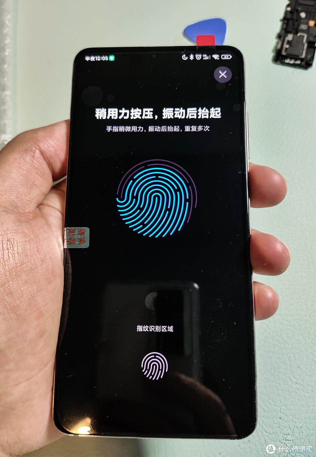 指纹功能正常,能录入能解锁屏幕(多试几次)后,开始装屏