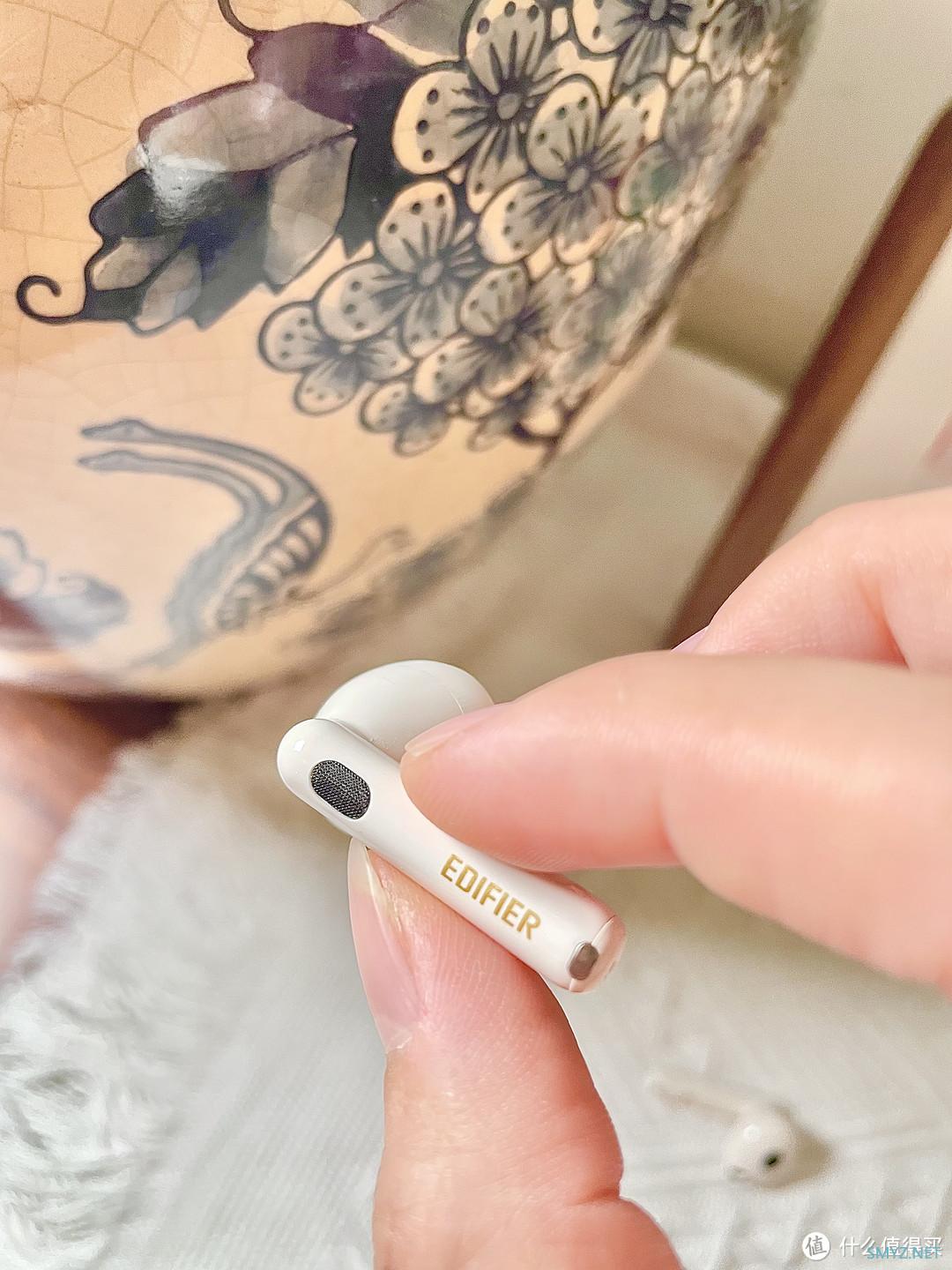充电仓背面是Edifier的标识和连接按键,只要和手机进行匹配连接,以后每次使用,都可以和手机秒连,速度超快。