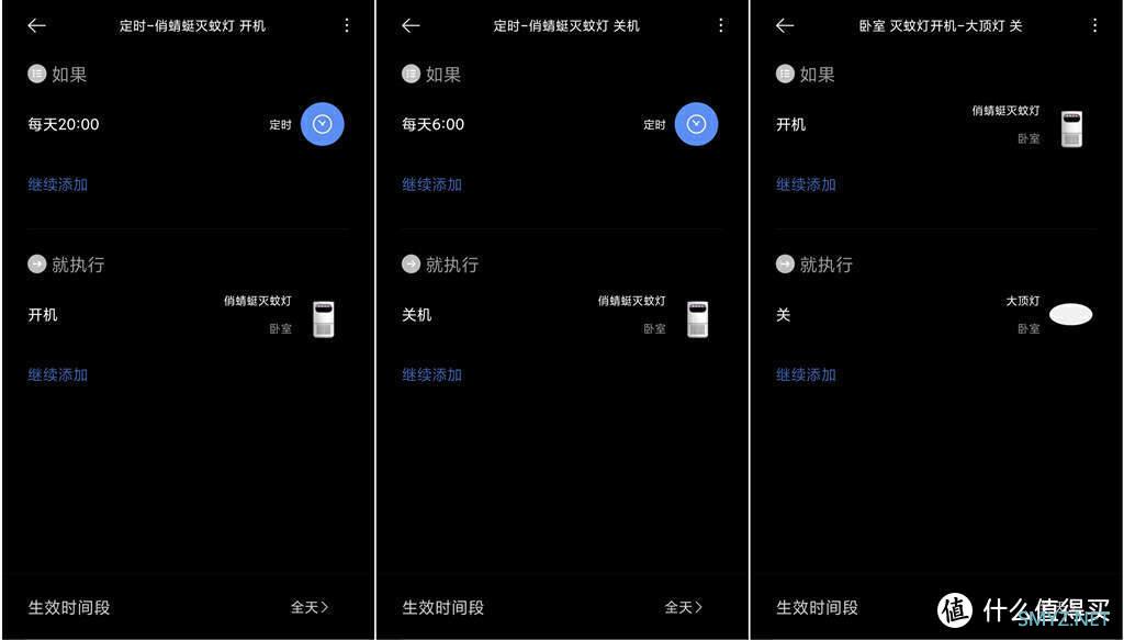 顶部采用触摸屏控制,可设置标准和静音两个档位,还可以设置定时关闭,非常方便;最棒的是它可以连入米家APP支持智能场景联动,这样就可以设置每天自动开关机和开启灭蚊灯后自动关闭房间灯光。