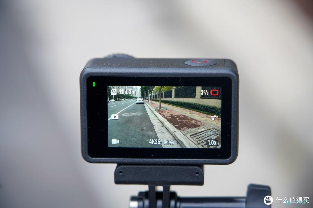 原装1770mAh容量的电池,实测满电4K25帧能录100分钟,4K60帧能录80多分钟,也就是一个半小时。官方数据1080P24帧能2.5小时,分辨率帧率越低续航越久。重度使用可以搭配官方电池仓。 支持快充,十几分钟就能充80%。也支持接充电宝录制,不过这种状态电池不充电。