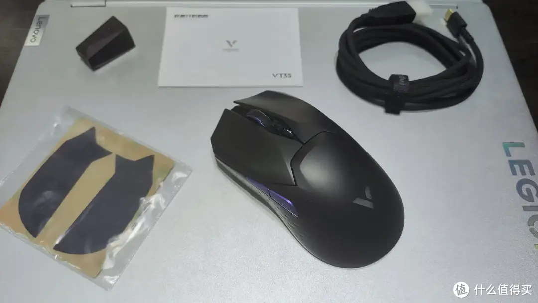 雷柏VT3S双模游戏鼠标通体的黑色搭配紫色点缀确实好看,在设计上采用了对称方案,所以也很耐看,这种低调“欲说还休”的感觉让我觉得不错。