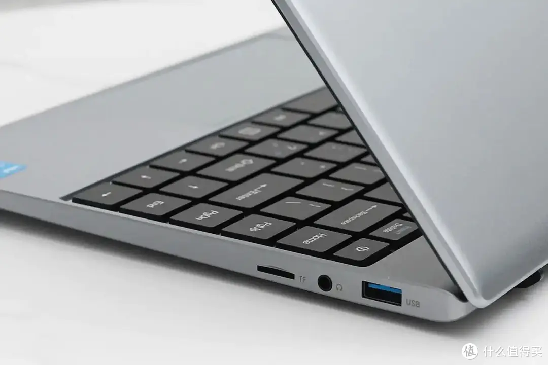 而在接口上,作为生产力工具,酷比魔方GT Book13 Plus也配备了足够丰富的接口供日常使用,右侧是1个标准USB3.0接口、1个3.5mm耳机孔、1个TF槽位。