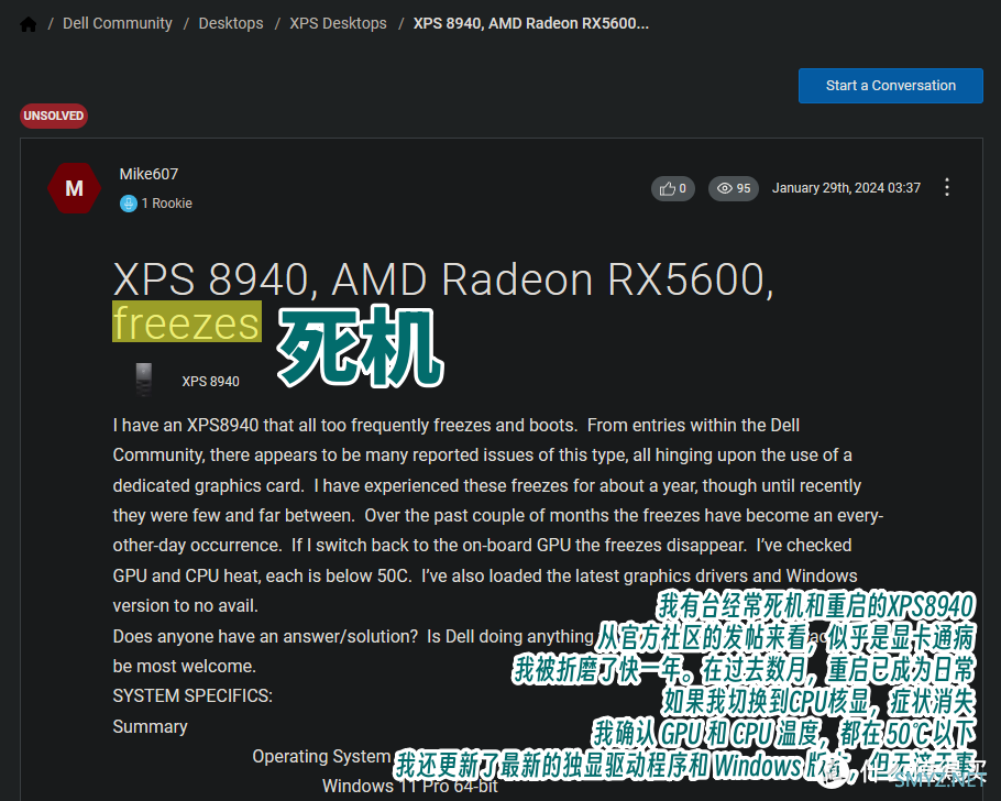 初代Navi搭配AVX512指令集的酷睿11代,再加上Dell标配电源的抠搜劲儿,RX 5700/5600显卡掉驱动的问题,大面积爆发,官方论坛被求助和投诉帖淹没。