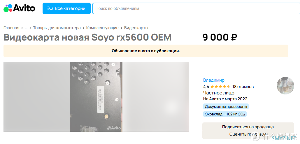 在大毛的Avito网站,五个月前成交一块的二手梅捷SOYO,9000卢布(约700元)
