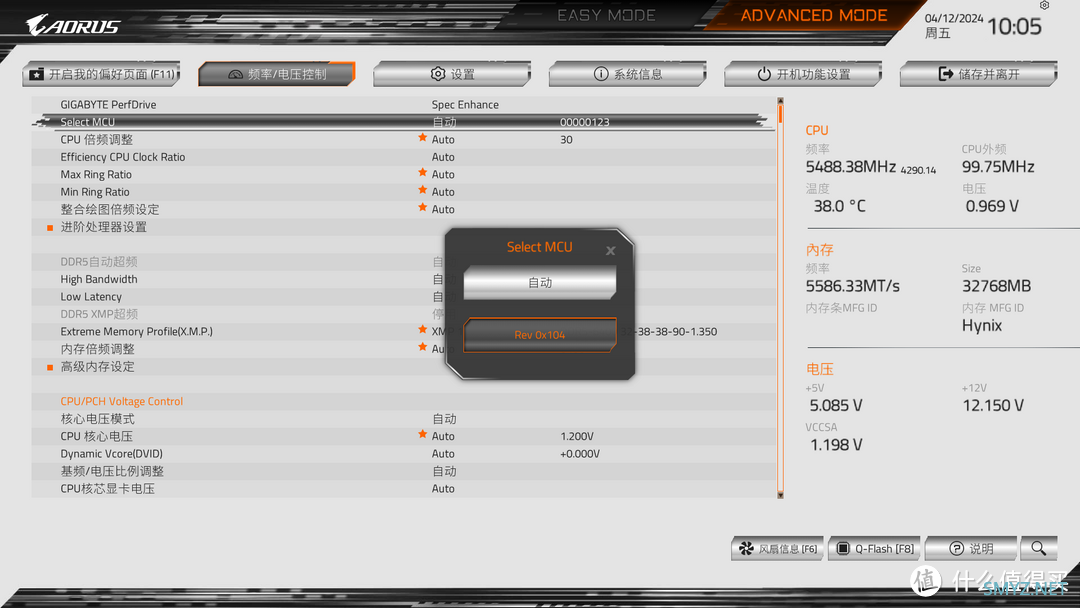 进到BIOS过后,然后找到频率/电压控制,找到Select MCU,选择Rev 0x 104,这就打开了104微码,是不是很简单呢?