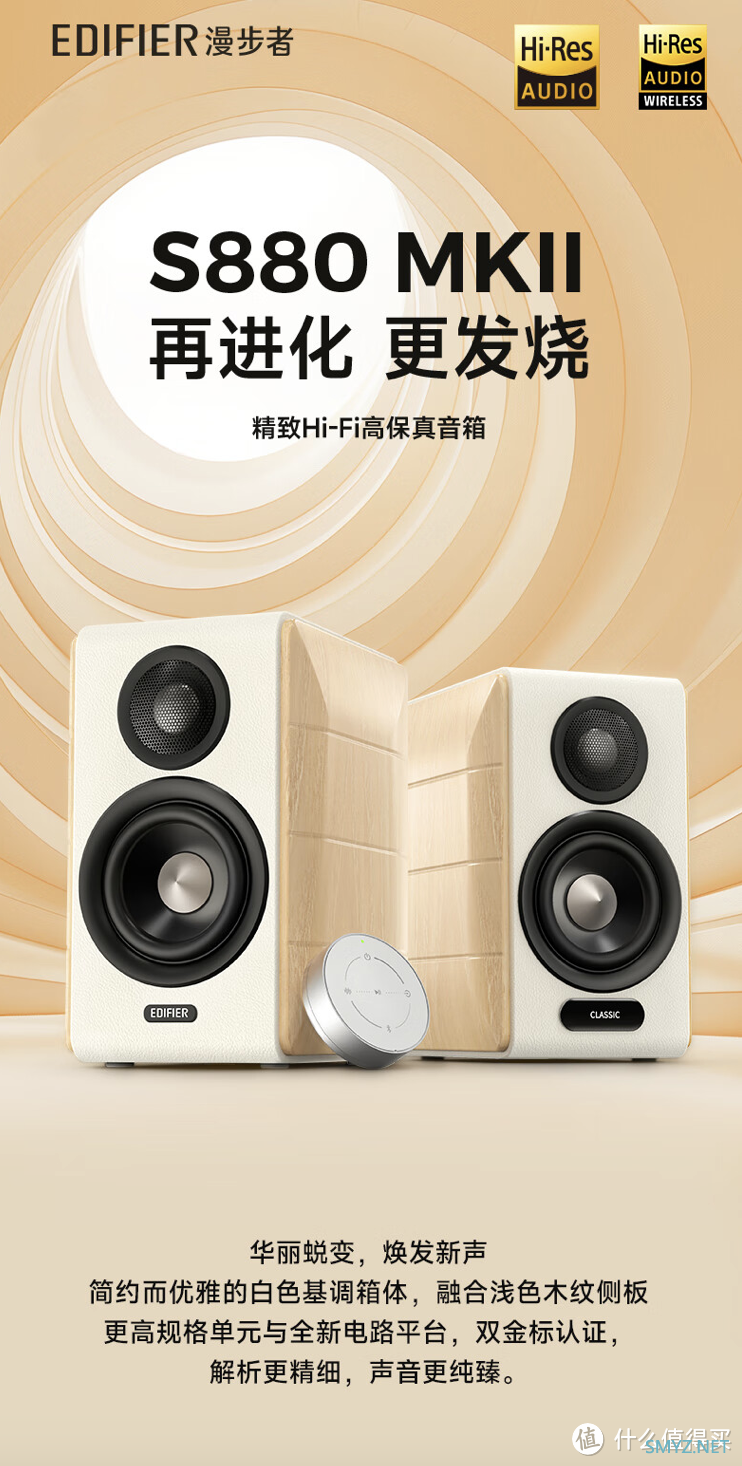 漫步者今天在京东上架一款型号为“S880 MKII”的 HIFI 有源 2.0 音箱,这款音箱主打“88W 功率 + Hi-Res 小金标认证”,将于明天 10 点开售,首发价 1199 元。