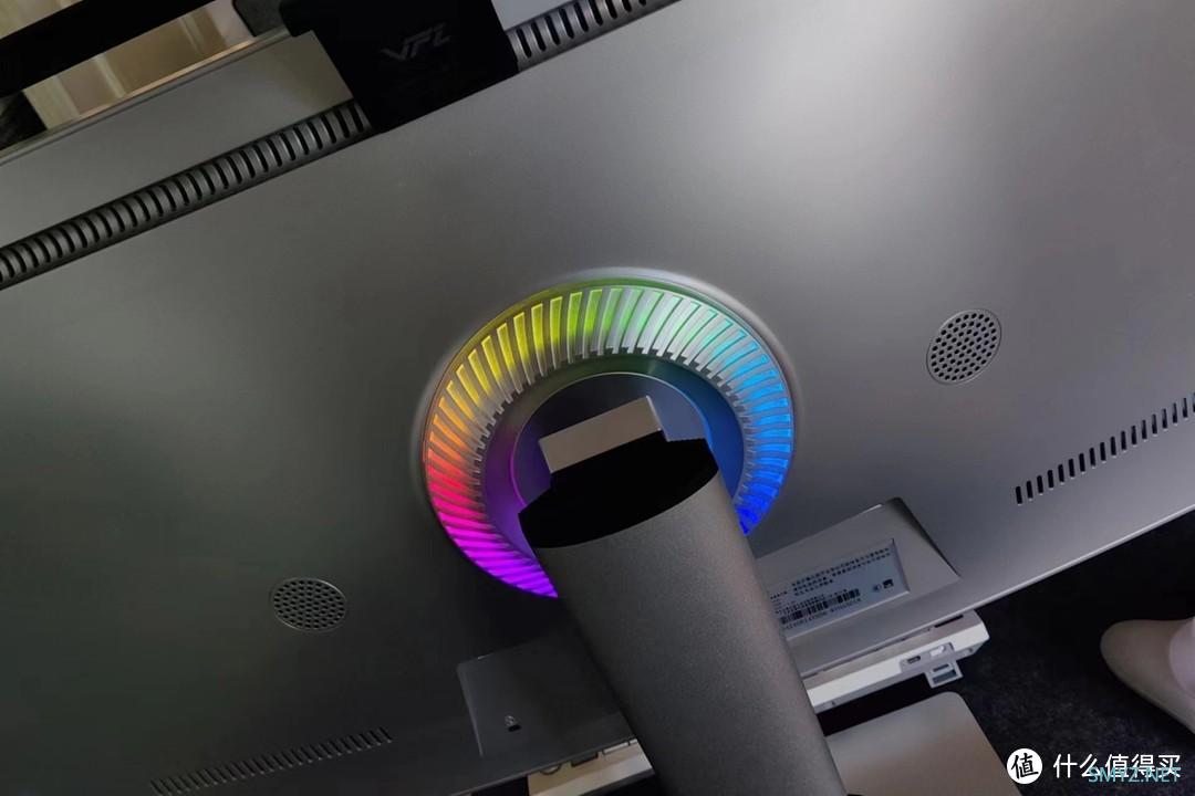 背面看似涂银的圆环涡轮设计不仅是点缀,开机后也会亮起一圈跑马灯,在黑夜环境下非常的炫酷,在OSD菜单中其也支持关闭。