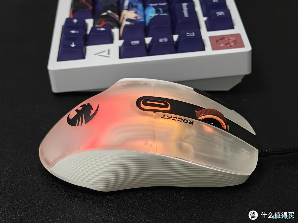 由于半透上盖的设计,鼠标后盖直接印上了黑色的冰豹Logo,开启灯光后效果非常酷炫;