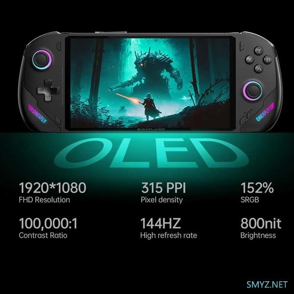 正面依旧是7英寸屏幕采用OLED面板,参数不同,分辨率1920x1080,像素密度315PPI,刷新率144Hz,亮度800nits,色域覆盖152% sRGB、112% DCI-P3,支持10点触控,响应时间0.6m/s。