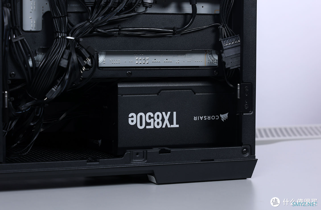 全新的酷睿U7搭配4070TiS显卡,功耗需求不低,但850W完全够用。今儿装机使用的是美商海盗船的TX850e ATX3.1金牌全模组电源。熟悉的黄黑撞色外包装,辨识度直接拉满。