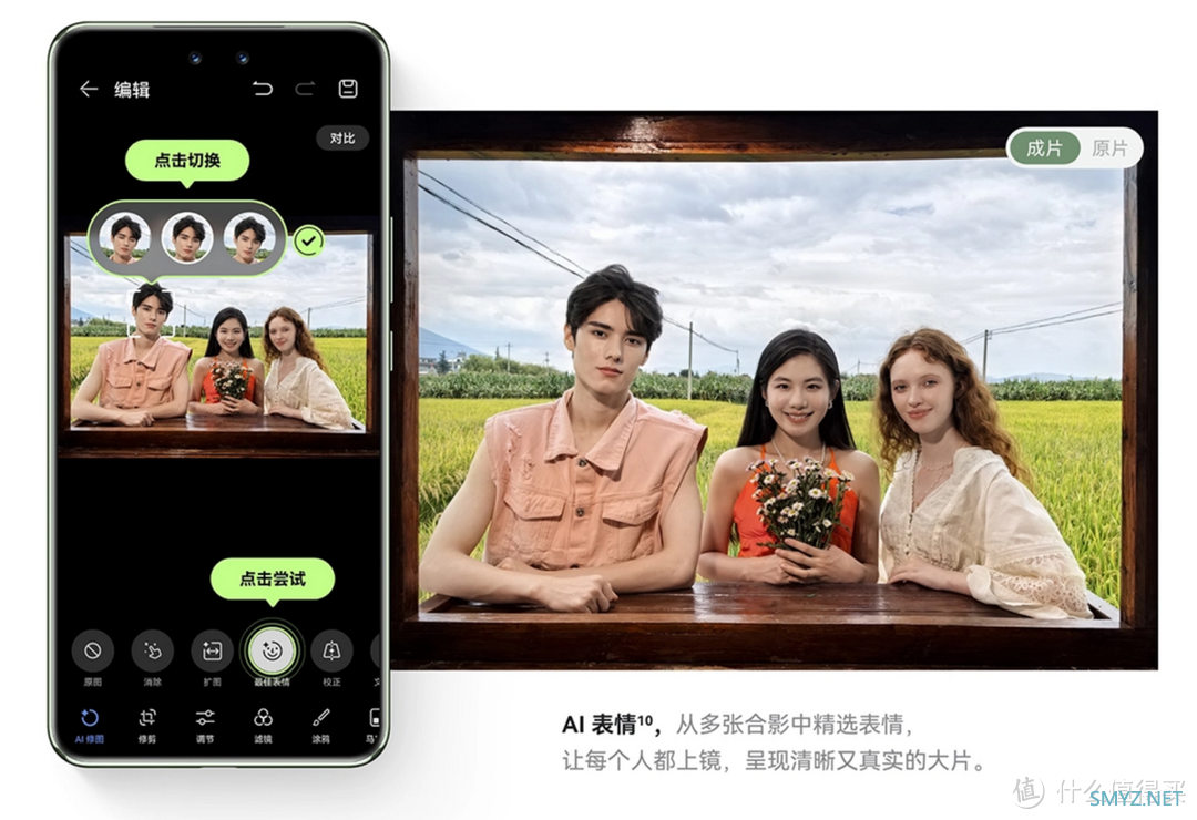 相信很多人都有这样的经历,那就是风景拍摄得非常好看,但由于表情管理不到位,最后只能遗憾删除。如今有了华为nova 13系列,这个问题就能迎刃而解了,因为它内置的AI最佳表情可以自动修复闭眼、眯眼或者表情管理不到位等问题,而且哪怕是多人大合影也能确保人人都有最美的一面。除此以外,照片中的路人乱入,可以通过AI消除进行快速清除。如果觉得照片气场不够强大,AI扩图也能够派上用场。