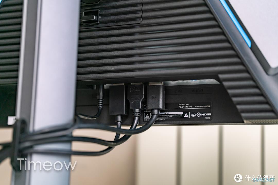 包装内除了显示器主机外,附件包含支持高帧输出的DP线、人体工学升降旋转支架和六边形金属底座、理线器、以及电源适配器一个。不多,且都用得上。