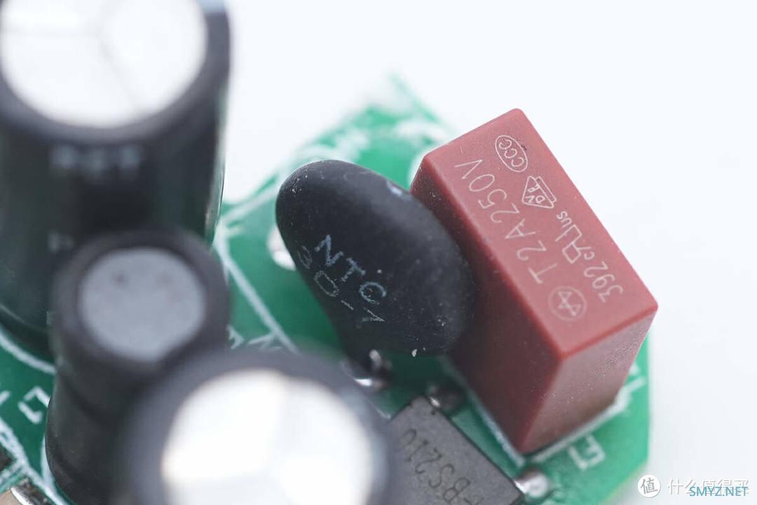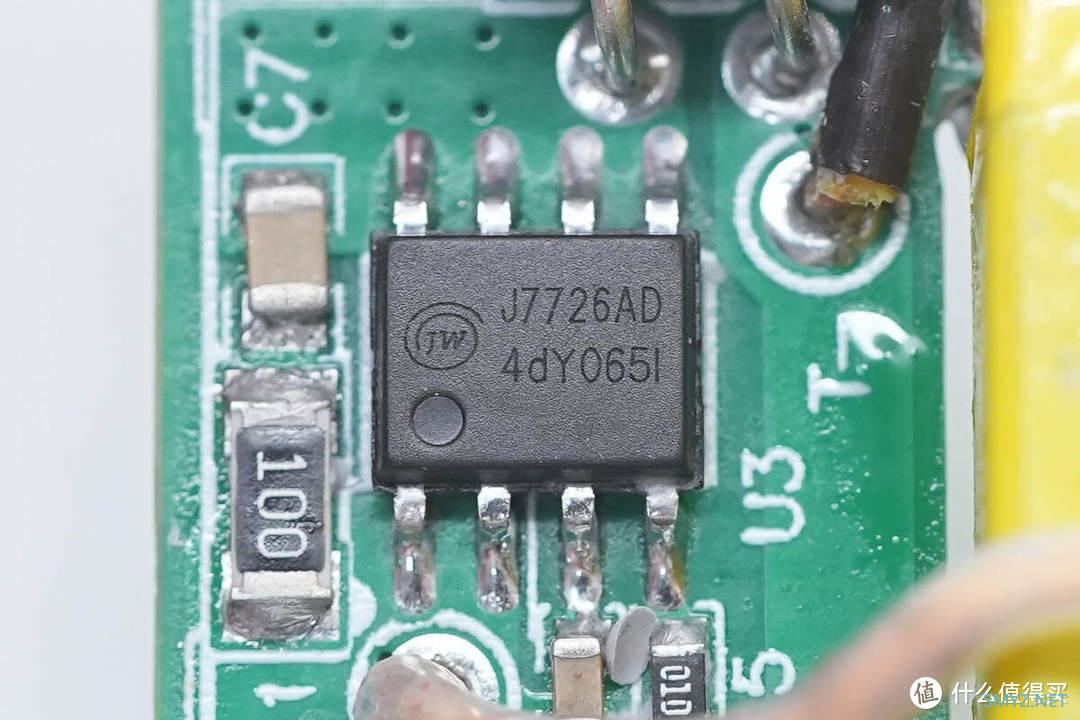 将胶清理干净,主板正面设有延时保险丝、NTC热敏电阻、整流桥、高压滤波电解电容、开关电源主控芯片、变压器、协议芯片等器件。