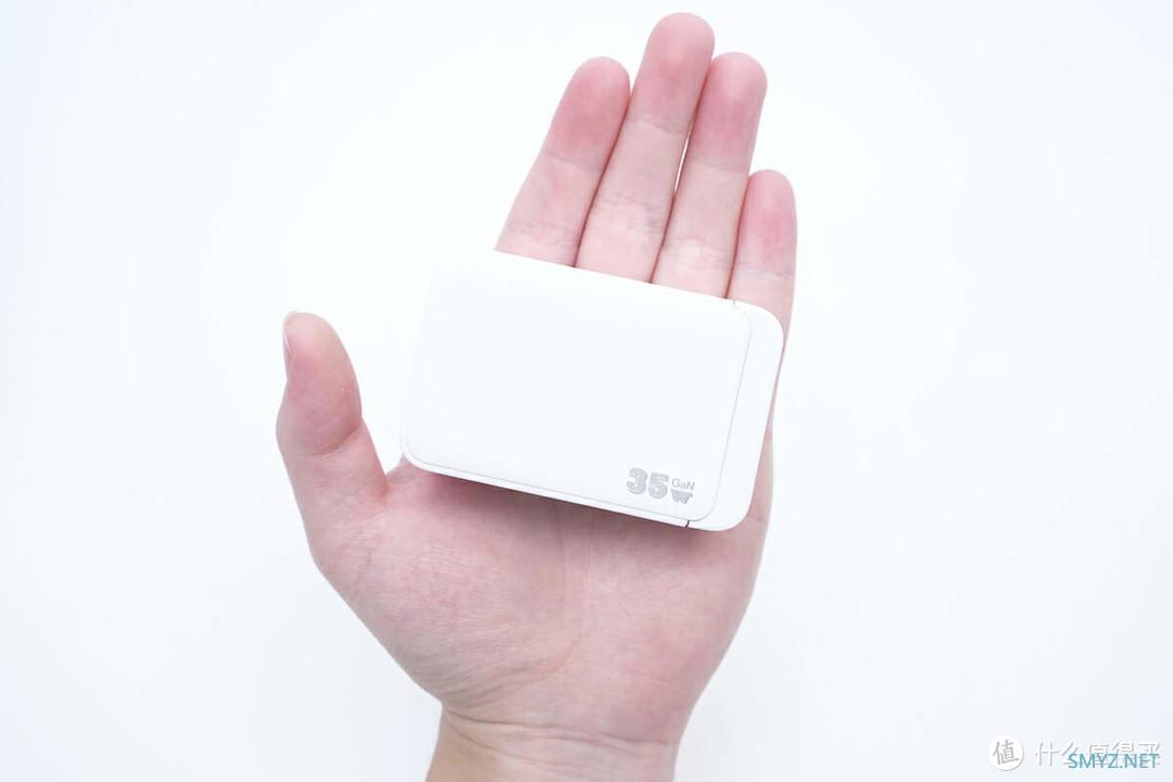 机身正面印有35W GaN字样,表明这是一款35W氮化镓充电器。