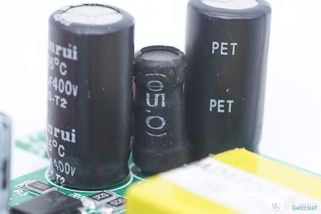 两颗高压滤波电解电容来自yunrui云睿,规格都是22μF400V,105℃耐热。