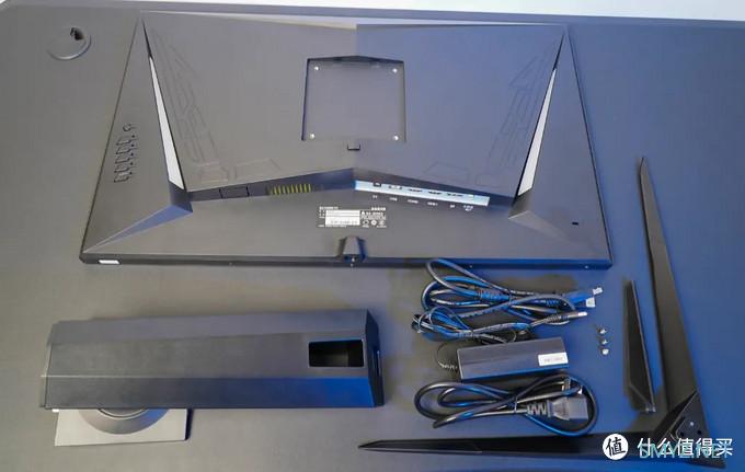 配件:这款显示器配备一根电源线和一根DP线,采用的是外置电源集成电路,有三颗螺丝钉是为了固定支架跟底座的;