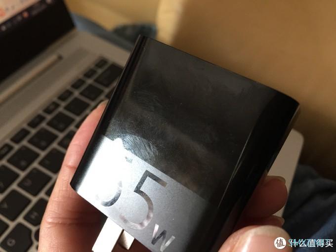 紫米的充电器,靠近插头部分是磨砂结构,应该是为了增加摩擦力,方便插拔;上部则是亮面效果,呃,怎么说呢,整体感觉是好看的,但亮面容易脏,留指纹,并且用久了,容易花,那就难看了。如下图: