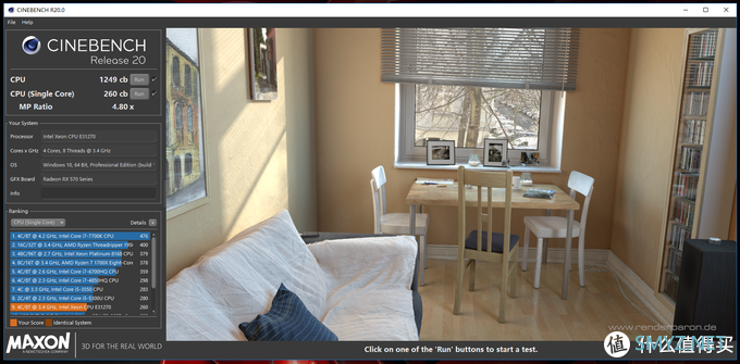 E3-1270 CineBench R20测试:单核:260cb;多核:1249cb