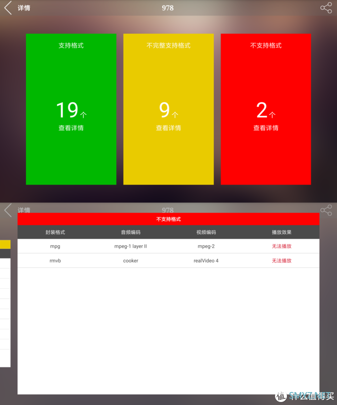 安兔兔视频测试,就RMVB和MPG这两种格式不支持,没法硬解